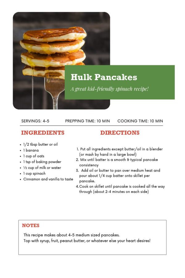 Hiding veggies in kid approved meals is a real talent! Take a look at our Hulk Pancake recipe using oatmeal and spinach!